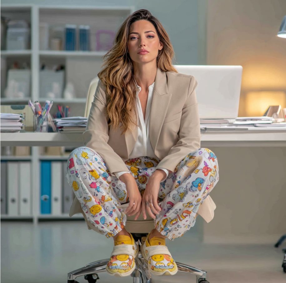 Pop in a single earbud or rest your phone against your shoulder while you scribble notes. Stack two or three open folders on the table, blur the background in post, and keep your expression alert but calm. The picture says, “I close deals in slippers,” and every follower who works from home nods in recognition.