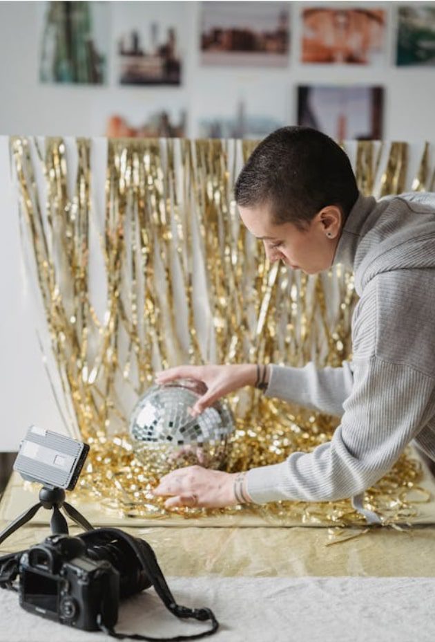 If you create physical products, include them in your shoot. Standing beside your merchandise or workspace demonstrates pride, craftsmanship, and personal ownership.