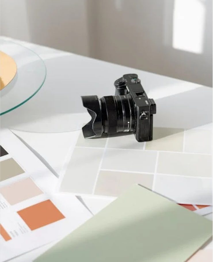 Your brand colors should subtly appear in your photos — through clothing, props, or background accents. This visual consistency builds recognition.