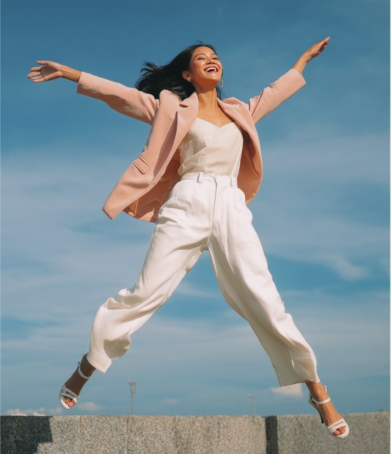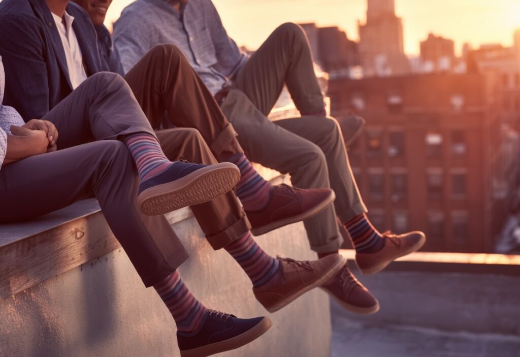 One knee lifted a little higher creates visual rhythm. Don’t look at the camera; look across the street, or at someone invisible.